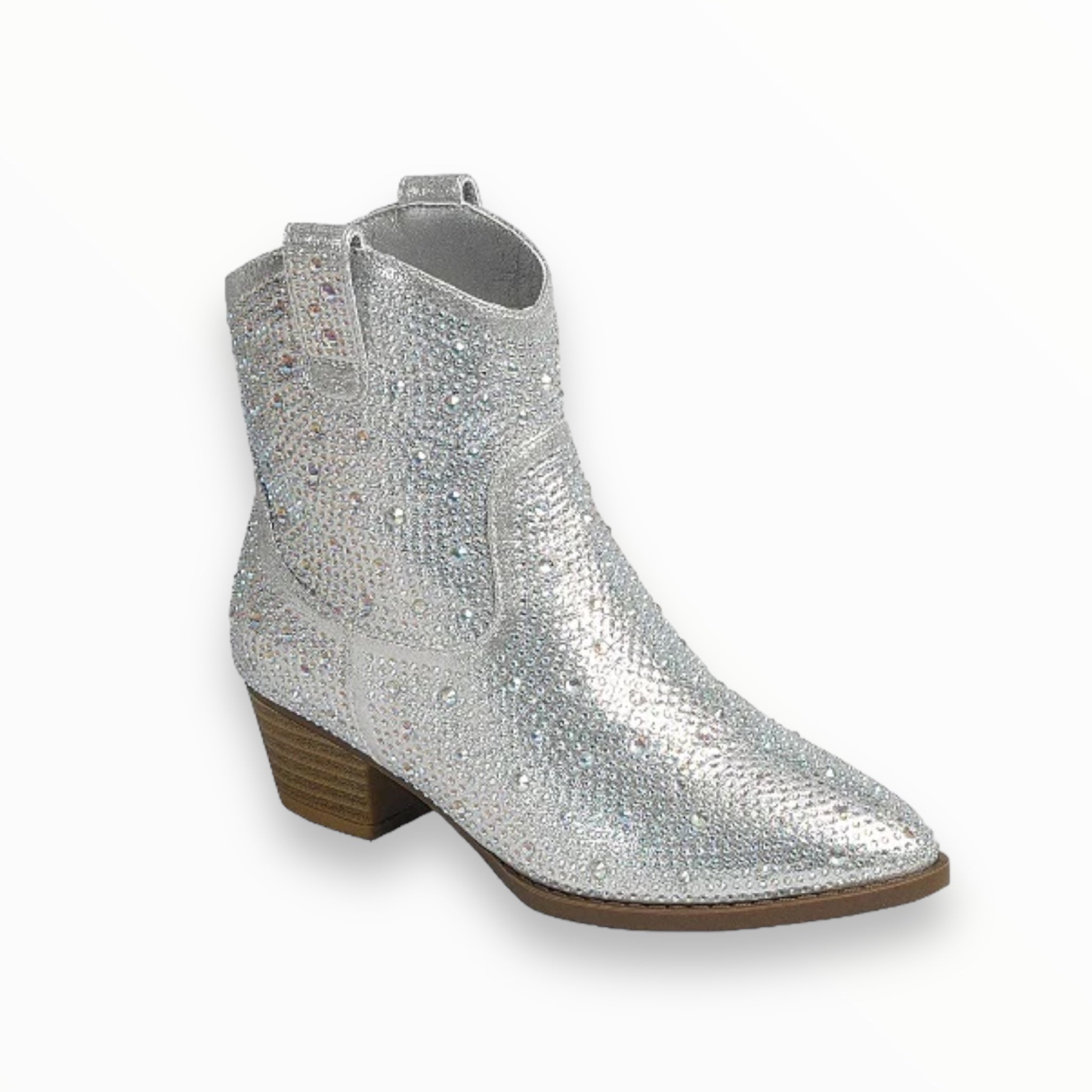- Rhinestone Encrusted Cowboy Ankle Bootie