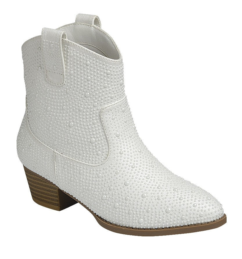 - Rhinestone Encrusted Cowboy Ankle Bootie