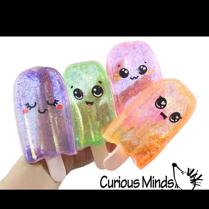1 RANDOM COLOR - These popsicle stress balls are so fun to play with. These soft and flexible toys look like and feel like the icy treat. These little toys can be stretched gently. Ice cream are 4.5" (5.5" including stick x 2.5" x 1". and is wrapped in clear plastic. The food comes in 4 different glittery colors including, pink, orange, blue, and purple, each with its own unique face. This is a very fun stress toy that is not only calming, but it also helps build hand and finger muscles and bilateral coordination. It is beyond amazing and has a super soft dough feel. You can poke and pinch it and it will retain its shape, then slowly ooze back into its shape just like a slow rise squishy would. What it feels like - super soft cookie or bread doh inside a ball. It is almost like a moving doh because when you release it slowly goes back to a ball shape. What is inside it - Very thick clear glue like filling - The filling is super sticky and stretchy. This is very calming because it has a very silky soft feel, and you can pull and indent it multiple ways. I like it because you can turn it and pinch it just like you did in elementary school when you made pinch pots with clay. You need to feel it to really know how nice these are. Fidgets are a self-regulation tool used with children who have a difficult time sitting still or focusing. Fidgets help promote focus and concentration, and keep the body (fingers) busy so they can still sit and focus! Fidget toys are also great for strengthening hand muscles and building fine motor and finger dexterity. Experience instant calm and endless fun with our Thick Glue Maltose Stress Fidget Balls — a viral sensation loved for their mesmerizing texture and addictive squish! Perfect for kids, teens, and adults who need to focus, unwind, or simply enjoy a uniquely satisfying stress reliever. ✨ Key Features: * Ultra-Thick "Maltose" Texture: Feels stretchy, slow-rising, and gooey-soft — just like honey or thick glue! * Super Durable Design: Made from non-toxic, BPA-free materials to handle endless squeezing and stretching. * Stress & Anxiety Relief: Reduces tension, calms nerves, and improves focus — ideal for work, study, or sensory therapy. * Mesmerizing Look: Comes in glossy, semi-transparent colors that shimmer and shine under light. * Perfect Size: Fits comfortably in one hand for portable relaxation anywhere you go. 💖 Who It’s For: Fidgeters, stress relievers, students, office workers, and anyone who loves ASMR-like tactile fun. Whether you're decompressing after work or need to keep your hands busy during study sessions — this squishy ball is your new go-to comfort toy! 🧠 Great For: * Stress and anxiety management * Sensory and tactile therapy * Focusing during ADHD or autism support activities * Gifts, party favors, and stocking stuffers
