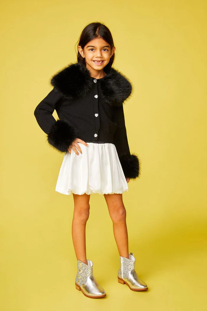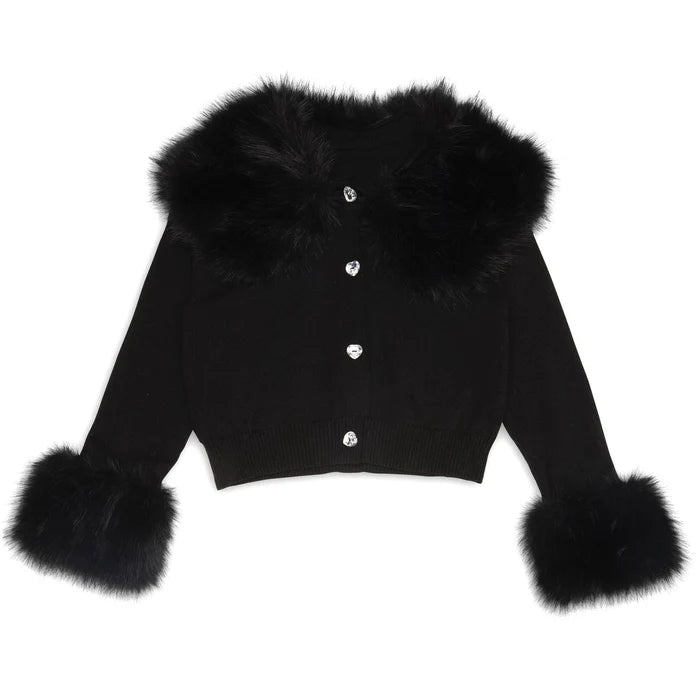 MINI DREAMERS VIVIAN FAUX FUR TRIM CARDIGAN - BLACK