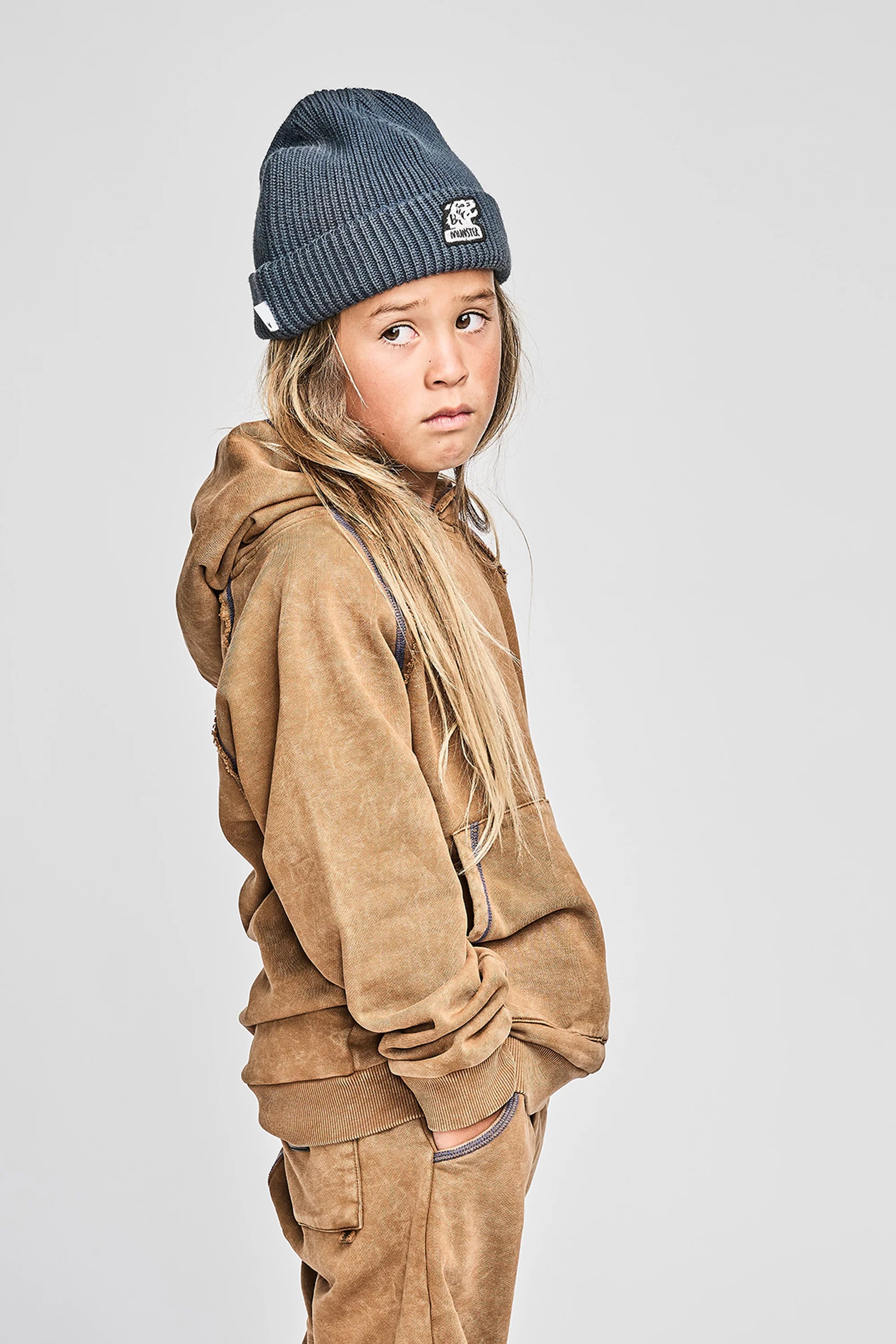 MUNSTER FLATFLOCK HOODIE - MINERAL ALMOND
