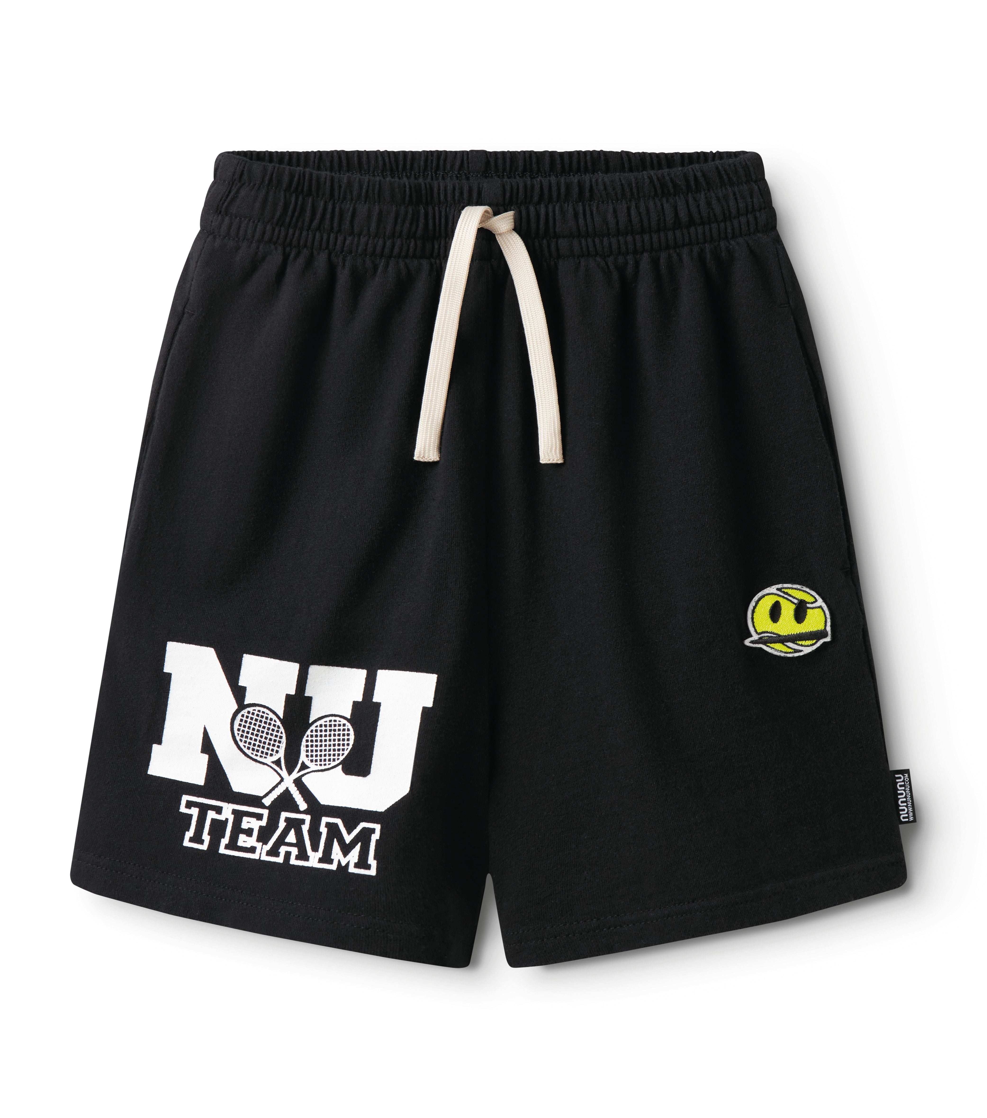 get ready to rally like a pro with these classic tennis shorts. they’re made of white heavy single cotton that moves with you and features a comfy elastic waistband to ensure they stay put long past the final point. we upped the cool factor with our dueling tennis rackets print atop the words nu team in our collegiate style font. better yet, we’ve got our embroidered tennis ball mascot patch smirking up front to cheer you on all match long. oh yeah, and hidden side pockets are the perfect place to stash victory snacks.