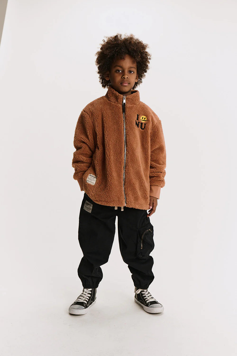 ever dream of getting a hug from a teddy bear? now, you don’t have to. this soft, thick, winter-ready sherpa jacket is here to do just that. it’s a gender neutral fit in teddy brown, made to keep the chill out. it’s got a full front zip, ribbed cuffs (no thumbholes), and roomy side pockets for keeping cold hands or random treasures. of course, the slight collar hugs the neck just enough to keep it warm & cozy at all times. and the best part? we’ve got a smirky smile embroidered on the chest between i & nu, putting a nununu twist on a souvenir shop classic.