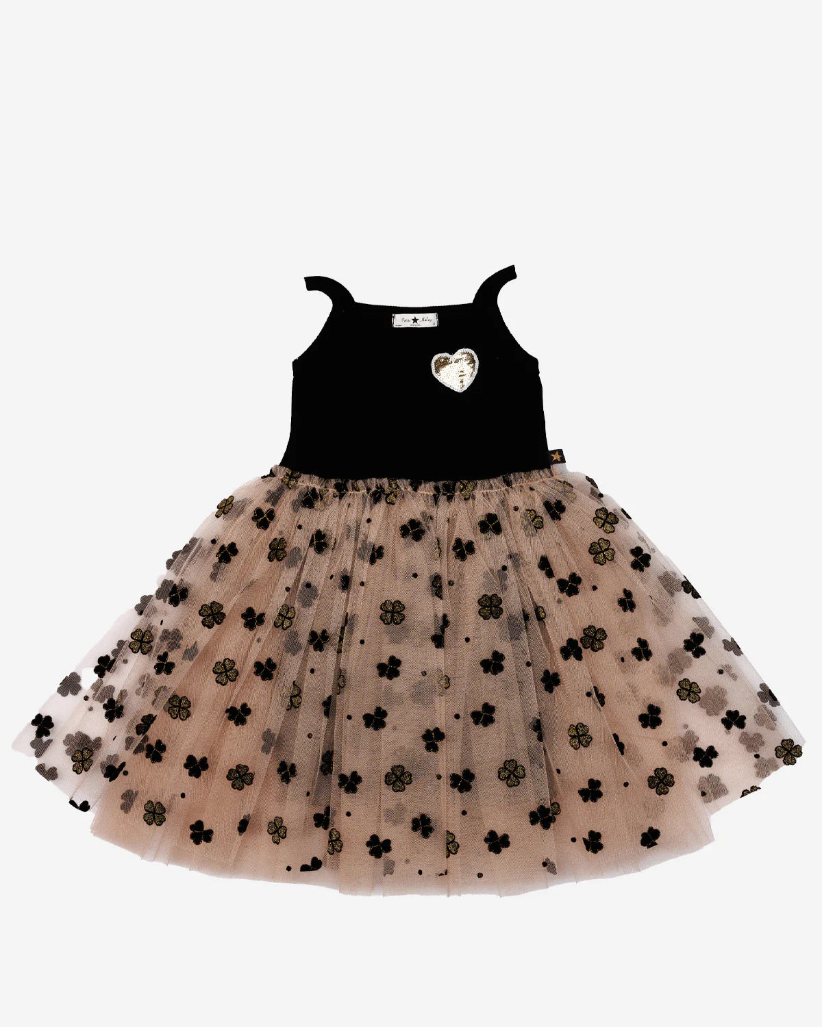 PETITE HAILEY HEART PATCH TUTU DRESS - BLACK