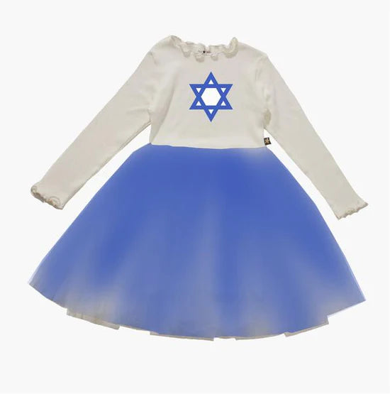 Get ready to shine this holiday season with our Holiday Star Tutu Dress! Made with soft ribbed fabric and featuring a festive holiday patch, this dress is perfect for any special occasion. The matching colored tulle adds an extra touch of elegance. Complete the look with our Patent MaryJane Shoes.