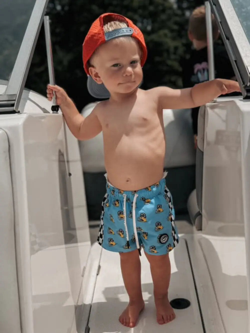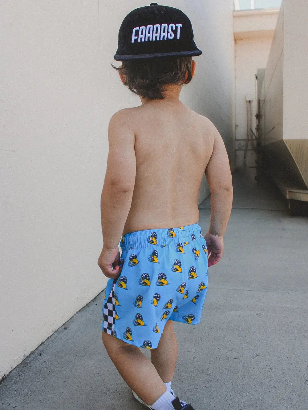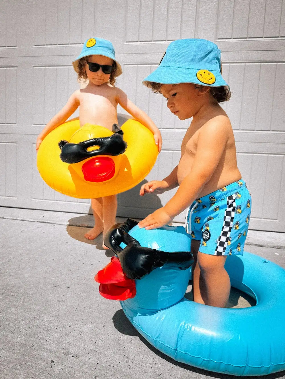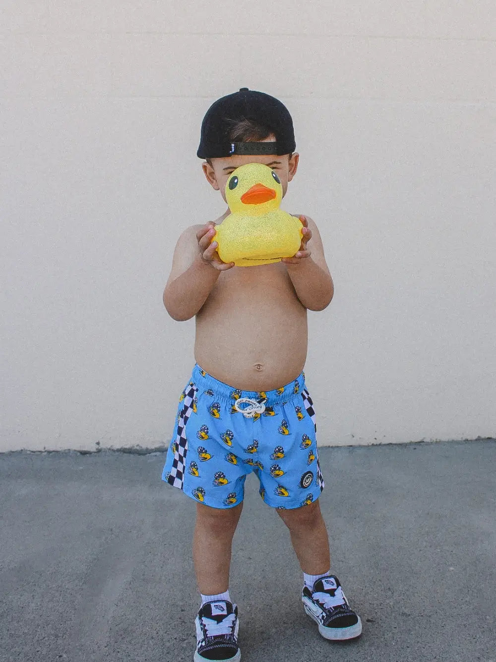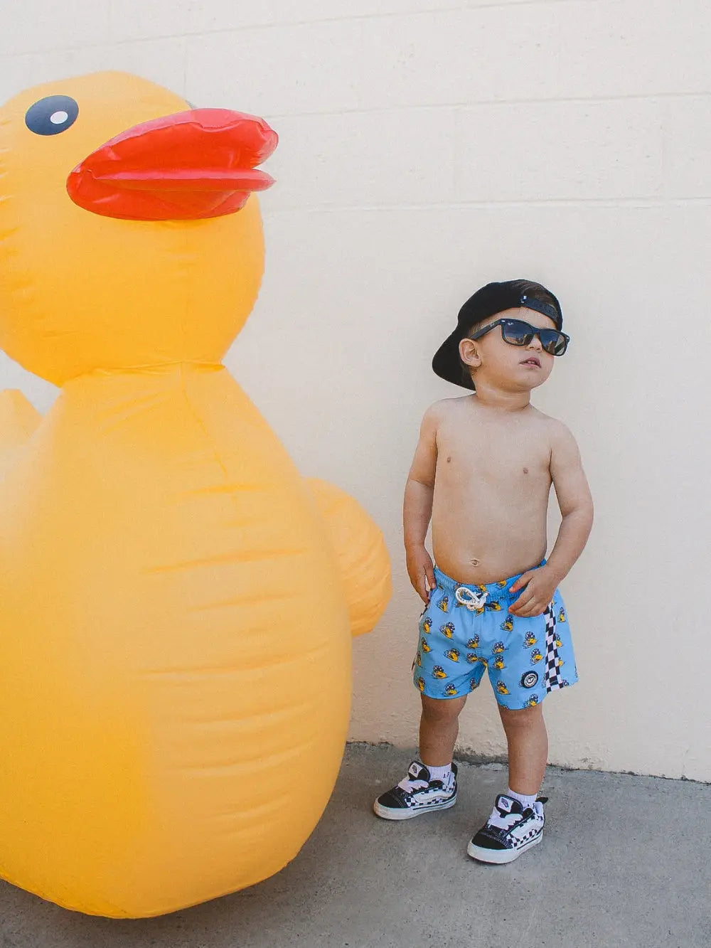 Quicker than quack π¦ This souped-up duck likes to GO FAST and is the perfect compliment for those long summer days on the lake or by the pool. SUPER soft and stretchy quick dry material perfect for in and out of the water all summer long.
