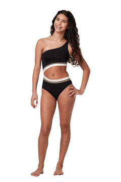 The String is a full-coverage, sophisticated two-piece that features elegant crochet detailing, making it a must-have this season. Whether your girl is headed to the beach or the pool, this bikini is both salt and chlorine resistant. The exclusive print fabric not only adds a unique charm but also protects the skin from the sun's harmful rays, as the UBF 50+ blocks out more than 97% of the UV radiation.