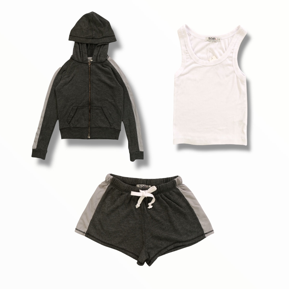 T2LOVE CONTRAST HOODED ZIP JACKET - CHARCOAL