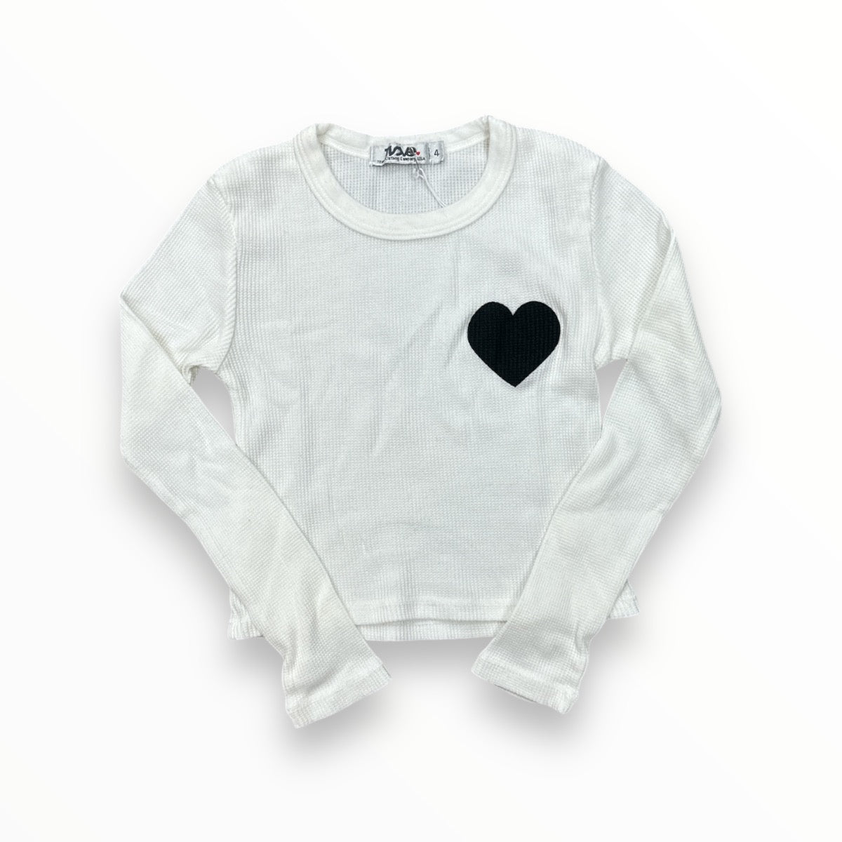 T2LOVE CROP LONG SLEEVE THERMAL WITH THUMB HOLES - IVORY/BLACK HEART