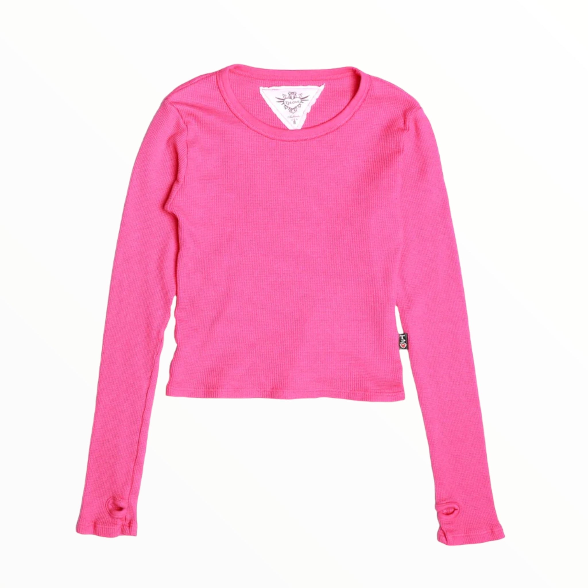 T2LOVE L/S THERMAL CREW TOP W/THUMBHOLE - FUSCHIA
