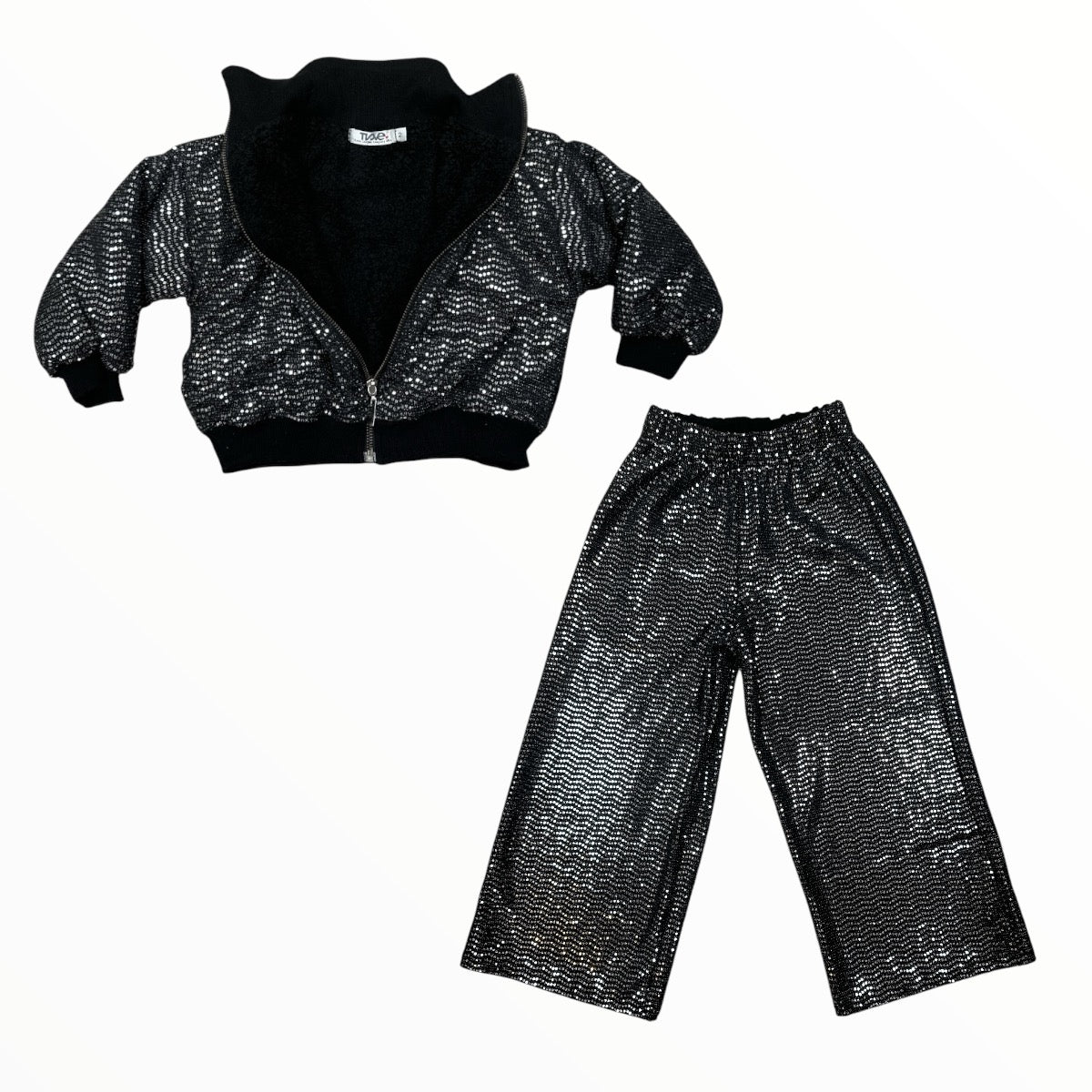 T2LOVE SEQUIN LOOSE FIT ELASTIC WAIST PANT - BLACK SEQUIN