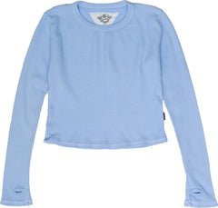 Your little girl will love our Long Sleeve Crew Neck With Thumbholes. Crafted in a super soft cotton-blend Jersey Modal Lycra fabric with a stretchy bodycon fit. This top is complete with a round neck line, long sleeves with thumb holes.