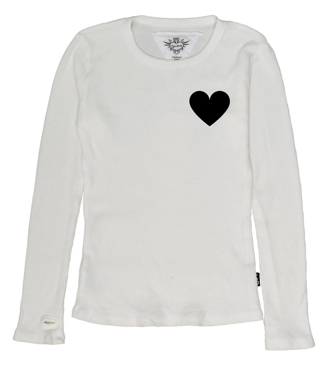 T2LOVE LONG SLEEVE THERMAL WITH THUMB HOLES - OFF WHITE/HEART