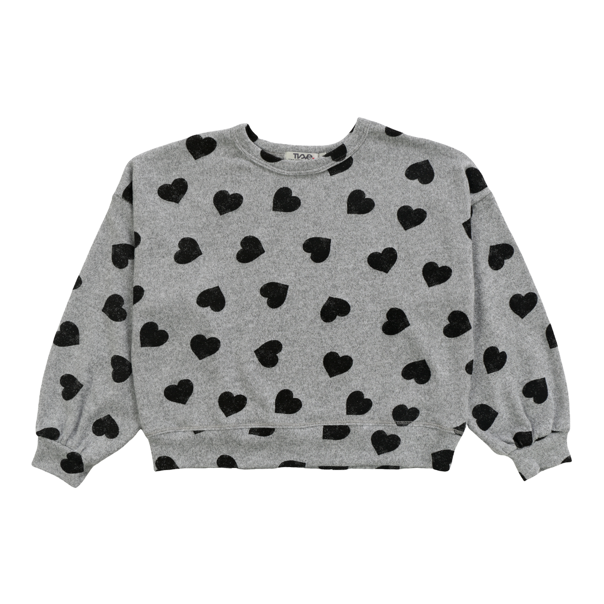 T2LOVE BALLOON SLEEVE PULLOVER - HEATHER GRAY/HEARTS