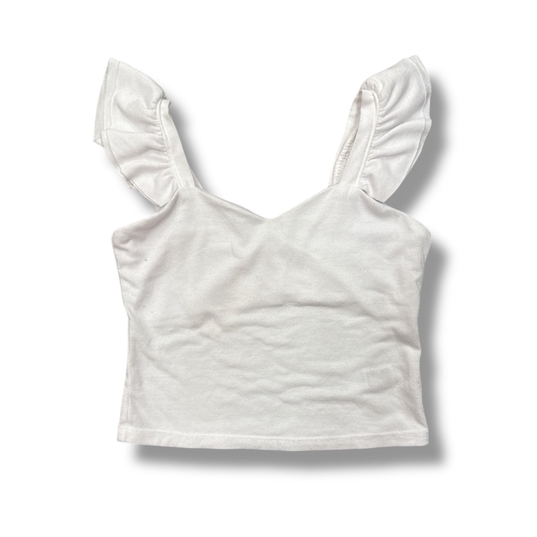T2LOVE SWEETHEART NECK TANK WITH RUFFLE SLEEVE - WHITE