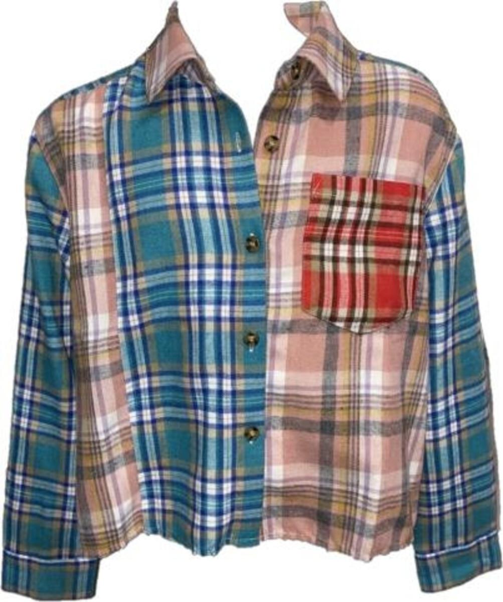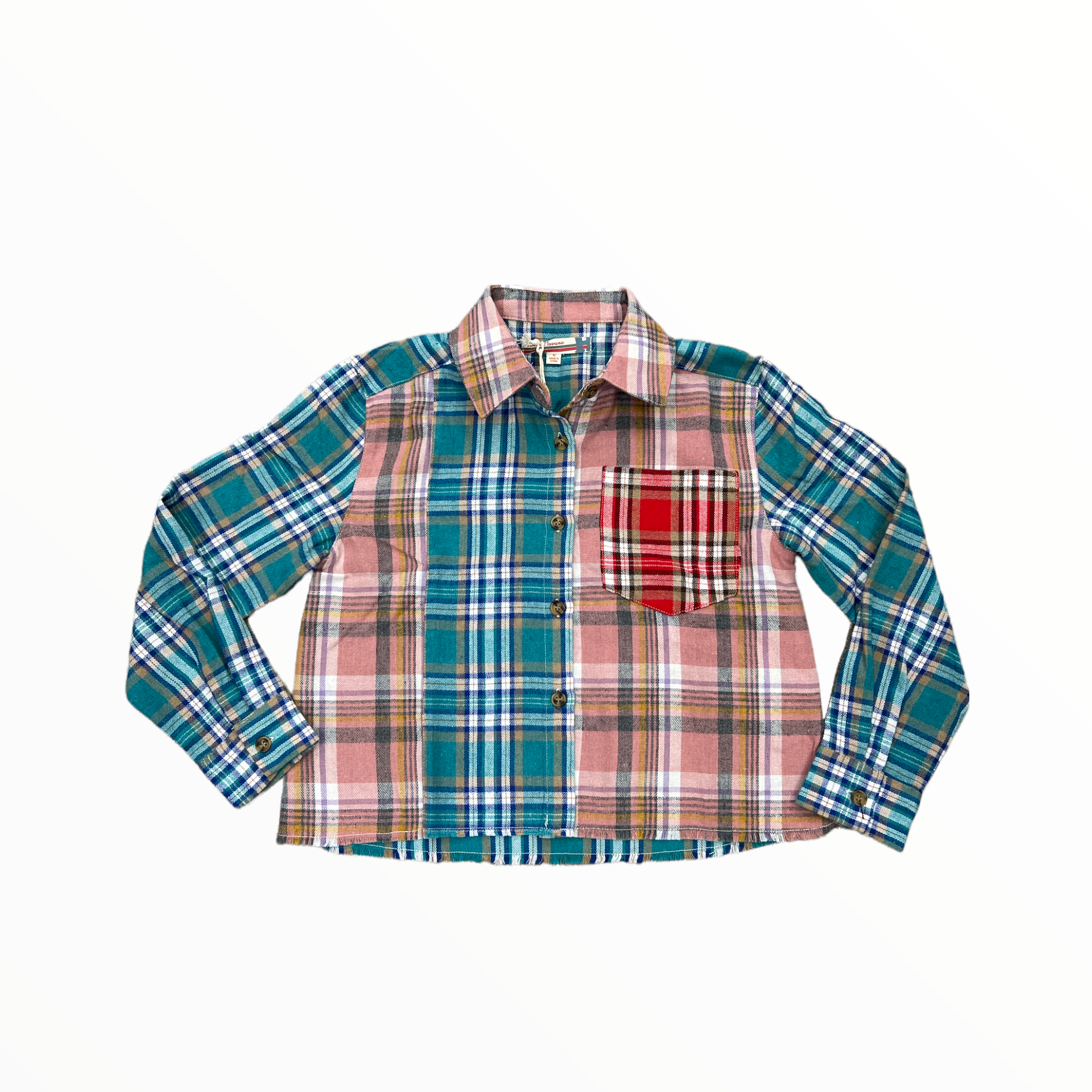 VINTAGE HAVANA PLAID CROP BUTTON DOWN - MULTI
